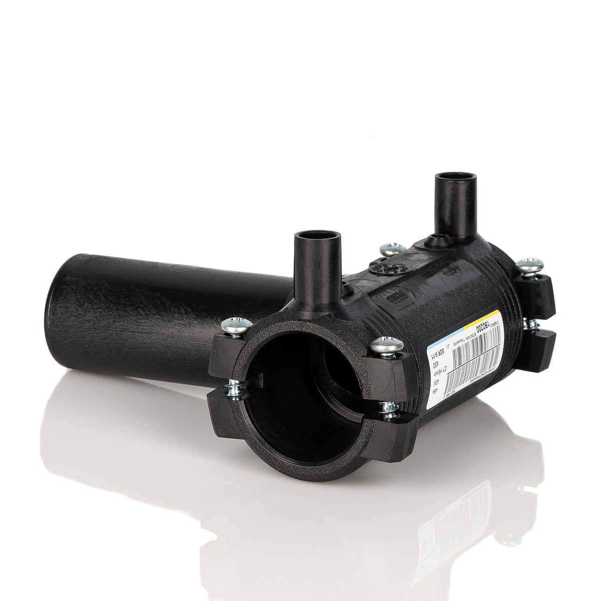 Elektrotrójnik 90 stopni równoprzelotowy z zaciskami montażowymi PE 100 SDR 11 (ISO S5)